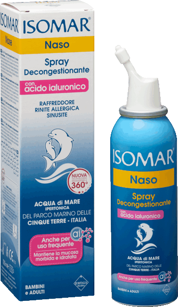 Isomar Spray Decongestionante con Acido Ialuronico è una soluzione ipertonica a base di acqua di mare e acido ialuronico appositamente studiata per ottenere un’azione decongestionante delle mucose nasali.