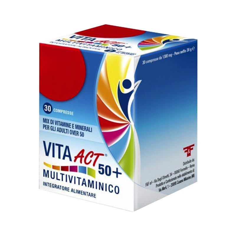 Vita Act 50+ è un integratore con un mix di vitamine e minerali per il benessere quotidiano degli adulti over 50.