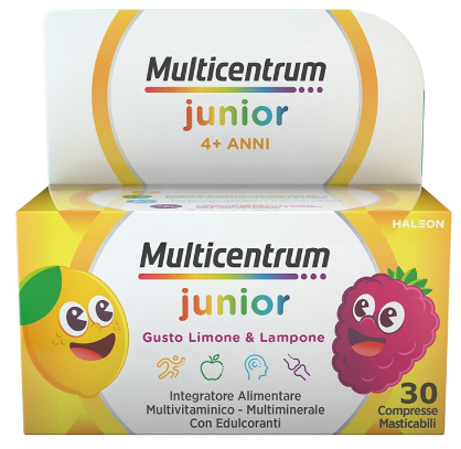 Multicentrum Junior è un integratore alimentare formulato con una combinazione bilanciata di vitamine e minerali per fornire ai bambini benefici specifici. L'integratore contiene i micronutrienti che svolgono molteplici ruoli nelle principali reazioni biochimiche dell'organismo, contribuendo ad esempio al mantenimento del normale metabolismo energetico. Nei bambini l'integrazione con vitamine e minerali può essere utile in particolari situazioni, quali: